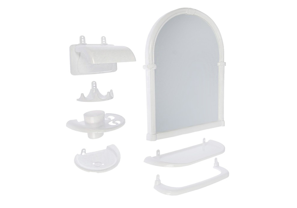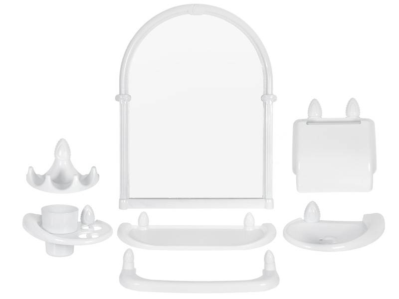 зеркало настенное, подставка для стакана, стакан, держатель для туалетной бумаги, полочка, мыльница, держатель для полотенец, крючок