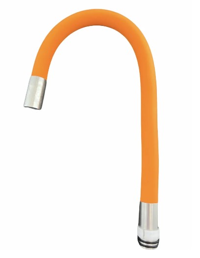 Гибкий излив для смесителя для кухни, размер гайки 3/4", внутренняя резьба. Цвет оранжевый. Длина - 50 см, гнется во все стороны и держит заданную форму. Гибкий излив подойдет для смесителя с наружней резьбой присоединения диаметром 3/4".