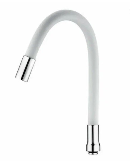 Высокий излив изготовлен из нержавеющей стали и покрыт силиконовой оплеткой белого цвета.