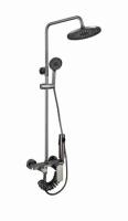 Стойка выполнена из качественных материалов: латуни и графита. Латунь гарантирует долговечность и надёжность конструкции, а графит придаёт ей стильный внешний вид. Благодаря настенному креплению стойка не занимает много места и может быть установлена даже в небольших ванных комнатах. Эта стойка для душа станет отличным выбором для тех, кто ценит комфорт, качество и стиль.
