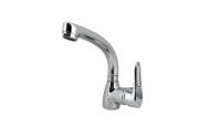Смеситель для кухни однорычажный, крепление на гайке. Смесители изготавливаются из высококачественного эко-алюминия. Все комплектующие включая картриджи, кранбуксы, сальники, прокладки и т.д. изготавливаются исключительно из высококачественных материалов. Подвижные детали производятся из керамического материала, что во много раз увеличивает ресурс их использования. Картриджи и кранбуксы, используемые в смесителях марки ALOUTE имеют шумопонижающий эффект. Матовое покрытие с высокой устойчивостью к агрессивной среде. Все металлические детали изготавливаются из первичного сырья. Высота 180 мм, высота излива 160 мм, вынос излива 140 мм, длина ручки 100 мм.
