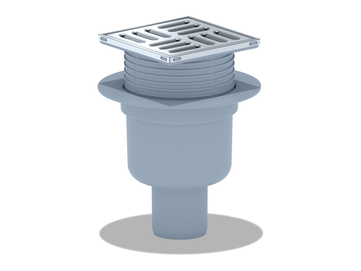 —Трап ТА 5702 10*10 Ф50 вертикальный, нержавеющая решетка, разъёмный, серый