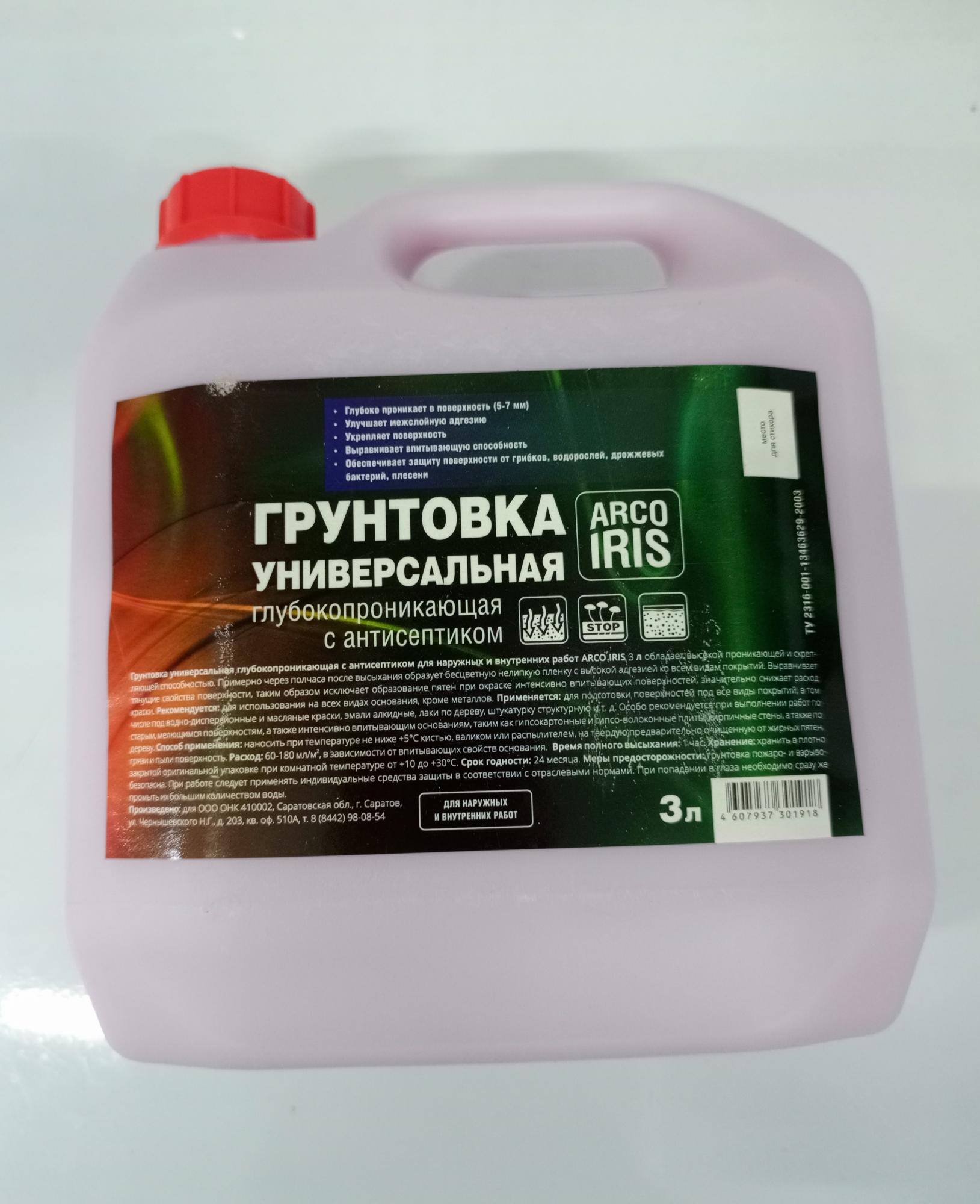 Грунтовка универсальная глубокопроникающая с антисептиком для наружных и внутренних работ 3 л (розовая) ARCO IRIS