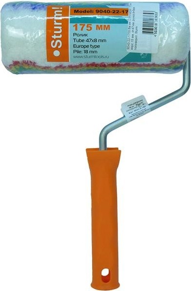 Валик малярный стержневой Sturm 9040-22-175S с ручкой 175 мм, ворс 18 мм, d=47мм, ручка d=8мм,