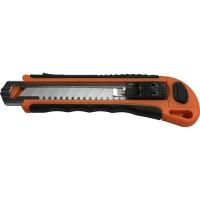 Нож с отламывающимся лезвием предназначен для резки бумаги, картона, тонкого пластика и т. д. Нож оснащён фиксирующим механизмом, позволяющим изменять уровень выдвижения лезвия. Корпус ножа имеет усиленную металлическую направляющую, нож снижает поперечные колебания лезвия в процессе резки. Нож оснащён механизмом автоматической замены лезвий с внутреннего контейнера. Так же незаменим в быту и при изготовлении различных изделий своими руками.